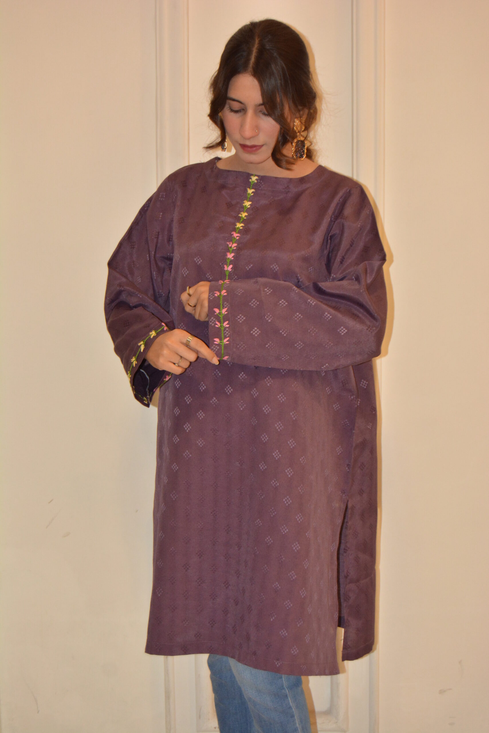 Be the first to review “Purple Hand-Embroidered Cotton Shirt”